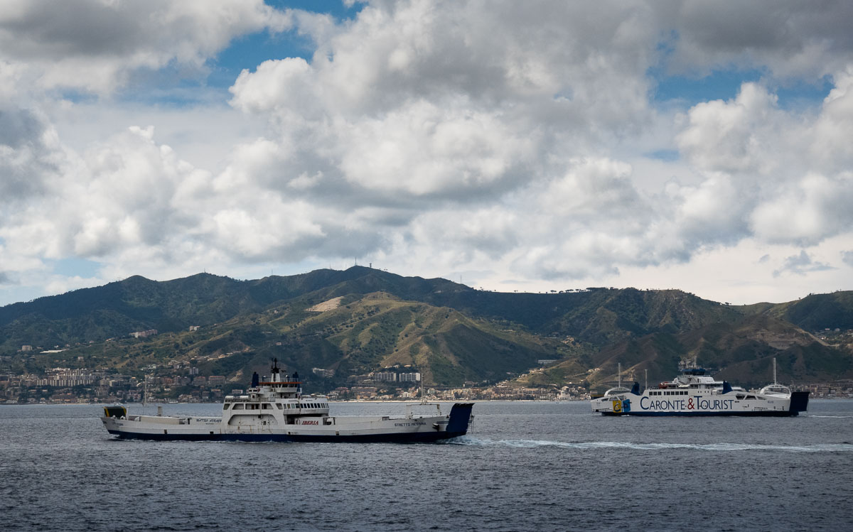 Alweer vroeg op: om half zeven liep de wekker af. Na het nuttigen van een kop koffie/thee met een croissant in station Rome Termini, stapten we in de trein naar Catania op Sicilië. Met flinke vaart reden we via Napels en een handvol andere plaatsen naar het zuiden van Italië. Daar ging de trein op de veerboot, wat wel een bijzondere ervaring is.