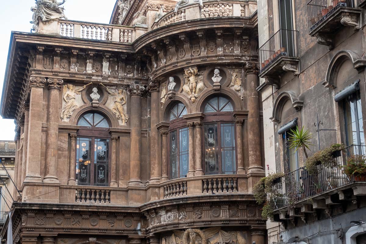 In Catania logeren we in een leuk, klein hotel, Hotel Villa Romeo. Ondanks het frisse weer, konden we buiten eten, vlak bij het Theater Bellini.