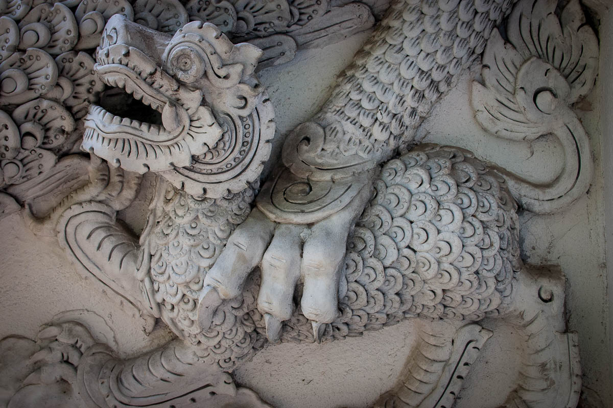 Vandaag zijn we echt toe aan een relax-dag! Vanmorgen hebben we laat ontbeten, daarna een stukje gewandeld in een stille buurt met mooie bloemen (stokrozen!) en inderdaad blaffende honden, in het zwembad iets te lang gezond en geshopped in het airconditioned winkelcentrum dat aan ons hotel vast zit. Onze inkopen: schoenen, broeken, hemden, sokken, dus echt Hollands: nuttig en goedkoop. Vanmiddag waren we toch echt weer toe aan een “shotje tempel”, dus hebben we een tuk-tuk genomen naar Wat Phra Sing, een van de mooiste en levendigste wats.